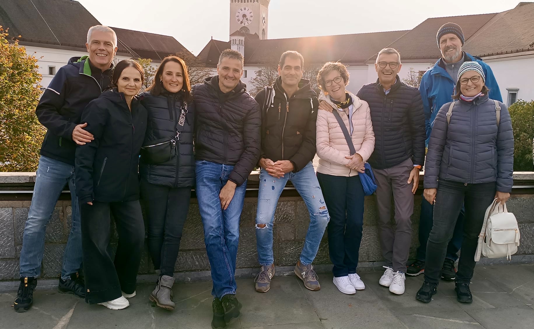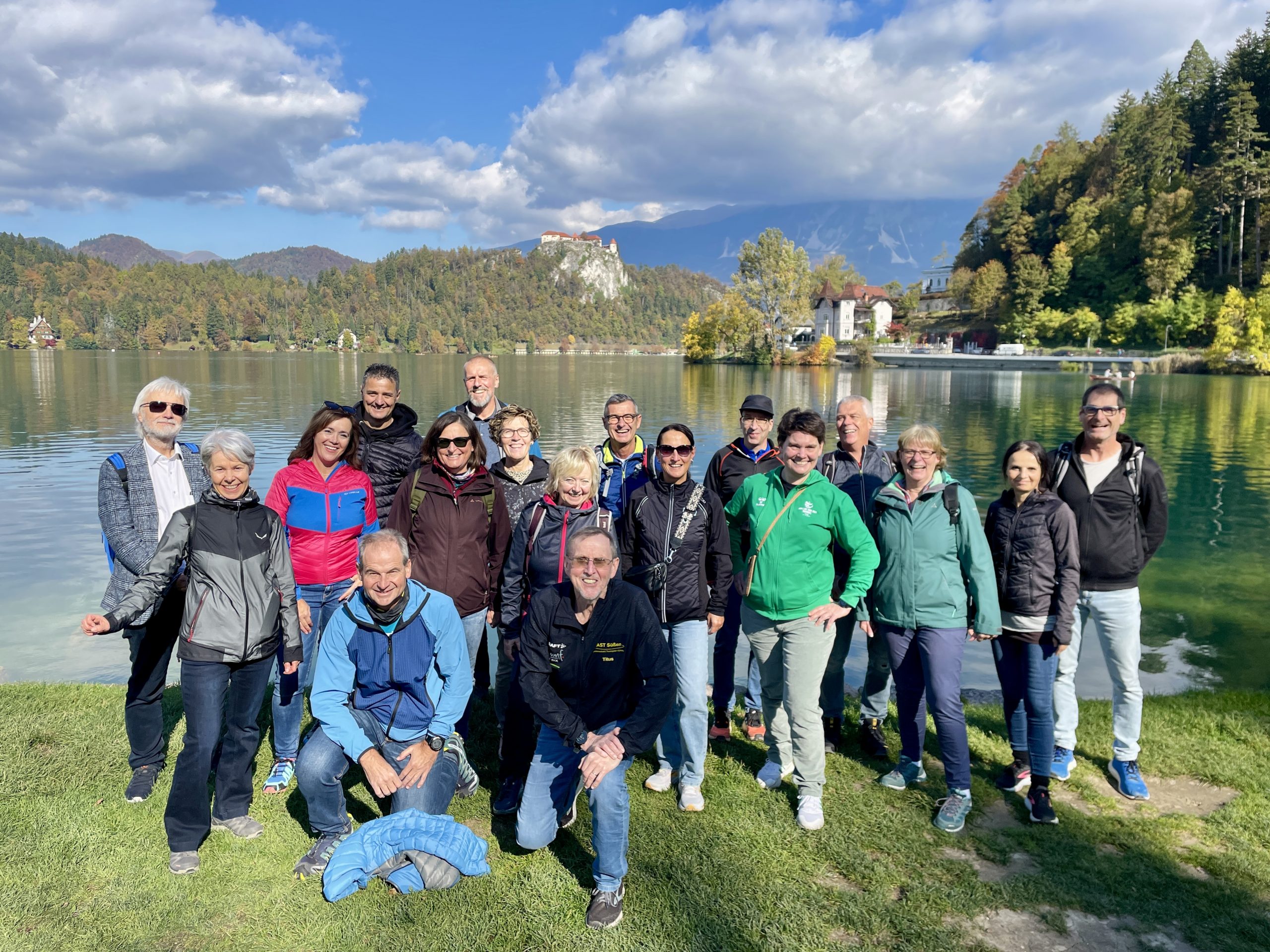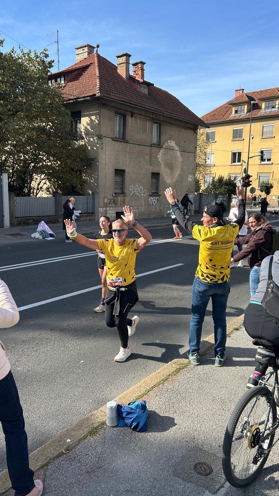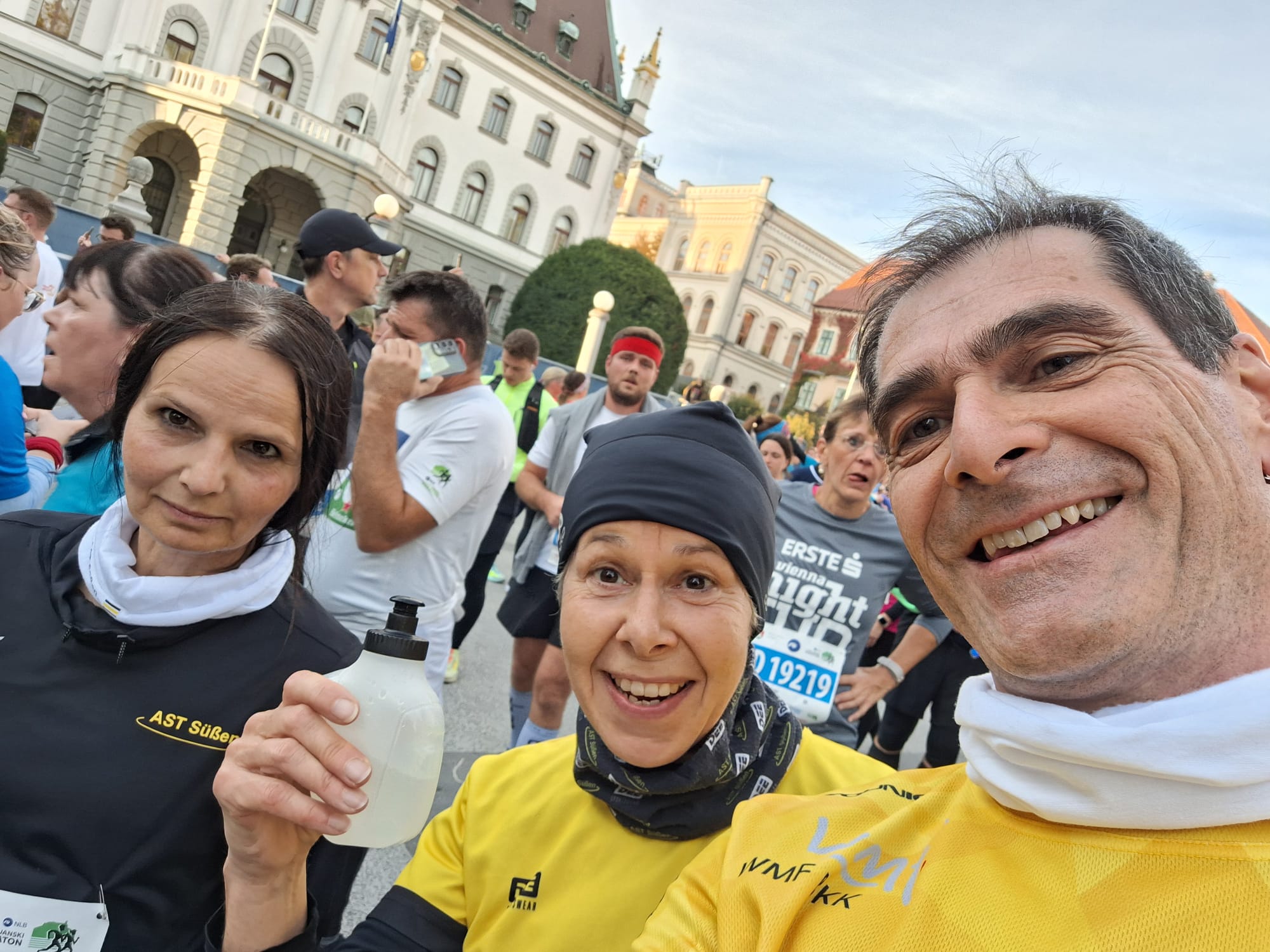 Wie schon bei den vorherigen Reisen war bis zum Lauf am Sonntag morgen das Kennenlernen der Stadt und der Region ein wichtiger Aspekt der gemeinsamen Reise. Gleich nachdem die Startunterlagen noch vor dem Einchecken im Hotel abgeholt wurden, ging´s in die Stadt. Gleich am ersten Abend war Gelegenheit, die slowenische Küche aber auch internationale Spezialitäten kennen zu lernen. Die immer freitags im Sommer stattfindende „open kitchen“ ist wie ein offener Markt konzipiert, eine ausgelassene Stimmung und tolle Leckereien gibt’s an zahlreichen Ständen. Am zweiten Tag war eine Ausfahrt nach Bled geplant. Die Umrundung des Bleder Sees, einst Unterbringungsort der Staatsgäste des jugoslawischen Machthabers Tito war ein Highlight fürs Auge und auch der Gaumen hatte Freude an der typischen Bleder Cremeschnitte. Der Lauf an Sonntag mit rund 20.000 Teilnehmern schien die Organisatoren an ihre Grenzen gebracht zu haben. Lange Schlangen bei der Gepäckaufbewahrung und unübersichtliche Steuerung der Teilnehmer und Besucher stellten viele auf die Geduldsprobe. Die völlig ungewohnte Sprache tat ein übriges zur Verwirrung. Positiver Nebeneffekt der schnellen Strecke war, dass einige aus unserer Gruppe ihre persönliche Bestzeit auf der schnellen Strecke verbessern konnten. Ein weiteres Highlight und gleichzeitig Belohnung des erfolgreichen Tages war die Bootsfahrt auf der Ljubljanica, mit interessantem Vortrag zur Stadt und ihrer Geschichte. Nach dem gemeinsamen Abendessen wurde trotz anfänglicher Schwierigkeiten mit dem Lift der 1933 fertiggestellte, damals höchste jugoslawische Wolkenkratzer erklommen und die tolle Aussicht auf das nächtliche Ljubljana samt einem letzten Drink genossen. Und auf der Heimfahrt am Montag wurde bereits wieder über das Ziel im kommenden Jahr diskutiert.