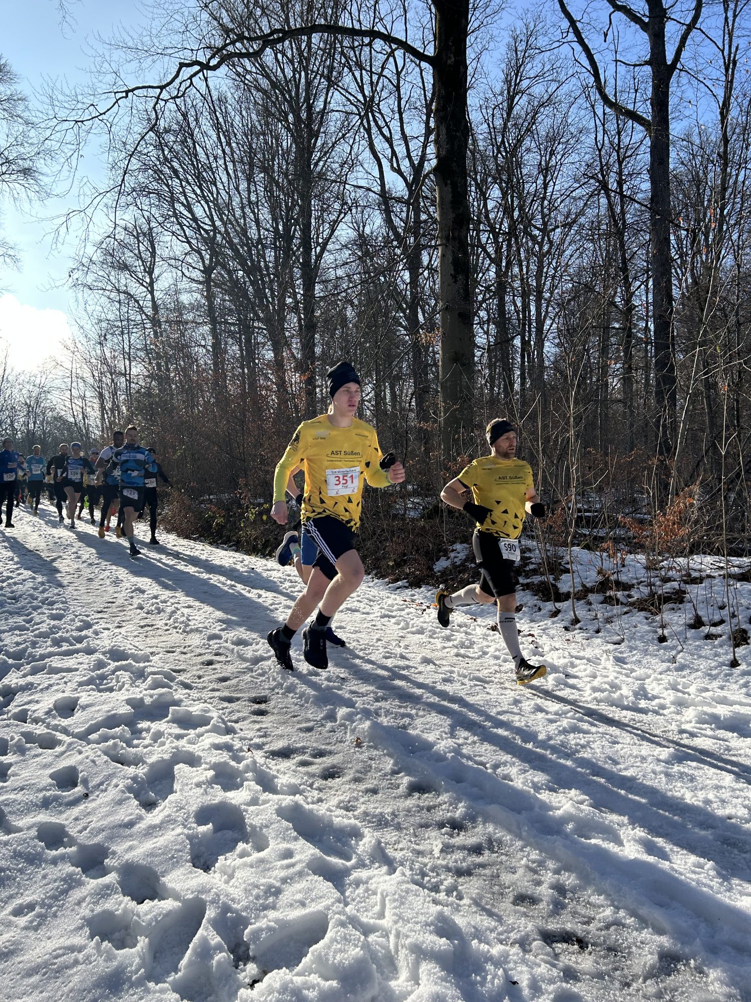 Beim zweiten Durchgang der DJK Winterlaufserie am vergangenen Samstag zeigten sich die Athletinnen und Athleten der Black-and-yellow-running-crew trotz widriger Bedingungen mit vereisten Waldwegen und viel Schnee wieder von ihrer besten Seite. Bemerkenswert waren bei diesen witterungstechnischen Herausforderungen vor allem die Tagessiege von Heiko Thiele in 18:33 Min und Laura Bohner in 21:54 Min über 5 Kilometer. Stark präsentierten sich zudem Benedikt Nußbaum, der als Gesamtzweiter über 10 Kilometer einlief, sowie Frauke Pobric und Paul Mühleis, die über 5 Kilometer die Plätze 2 und 3 belegten. Damit gehen Heiko, Laura und Benedikt als klare Favoriten für den Gesamtsieg in der Serienwertung ins letzte Rennen der Winterlaufserie Ende Februar. Mit Frauke und Paul liegen zwei weitere AST-Athleten nach derzeitigem Stand auf Gesamtpodiumsplätzen in der Serie.
