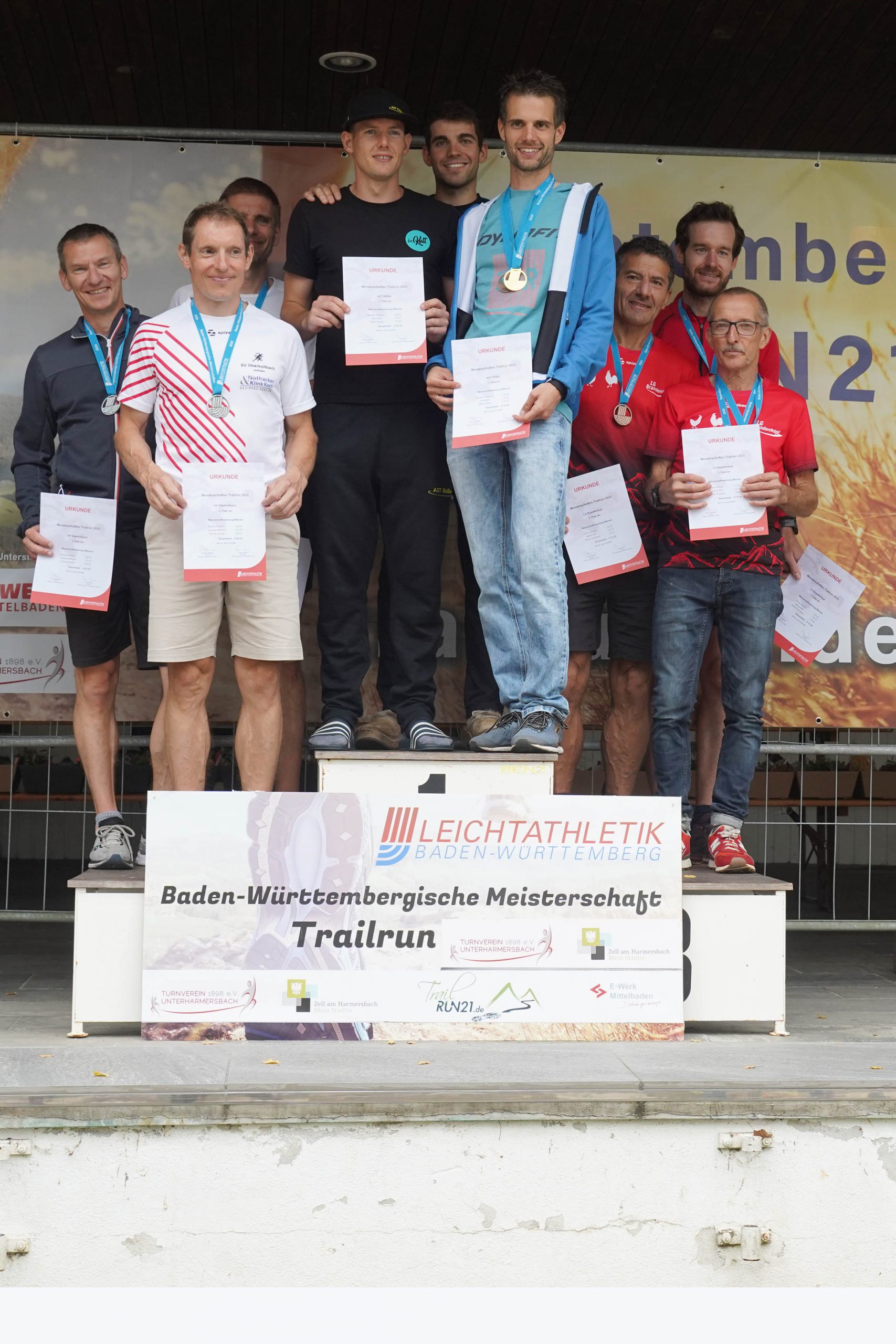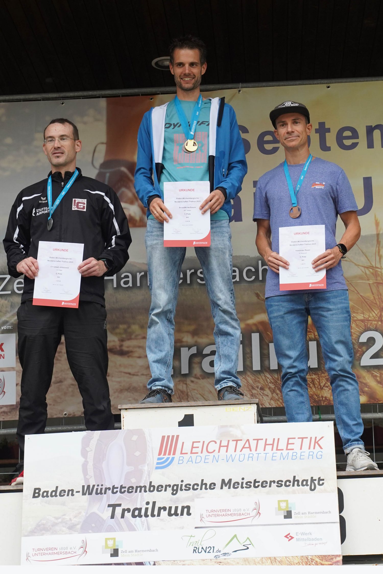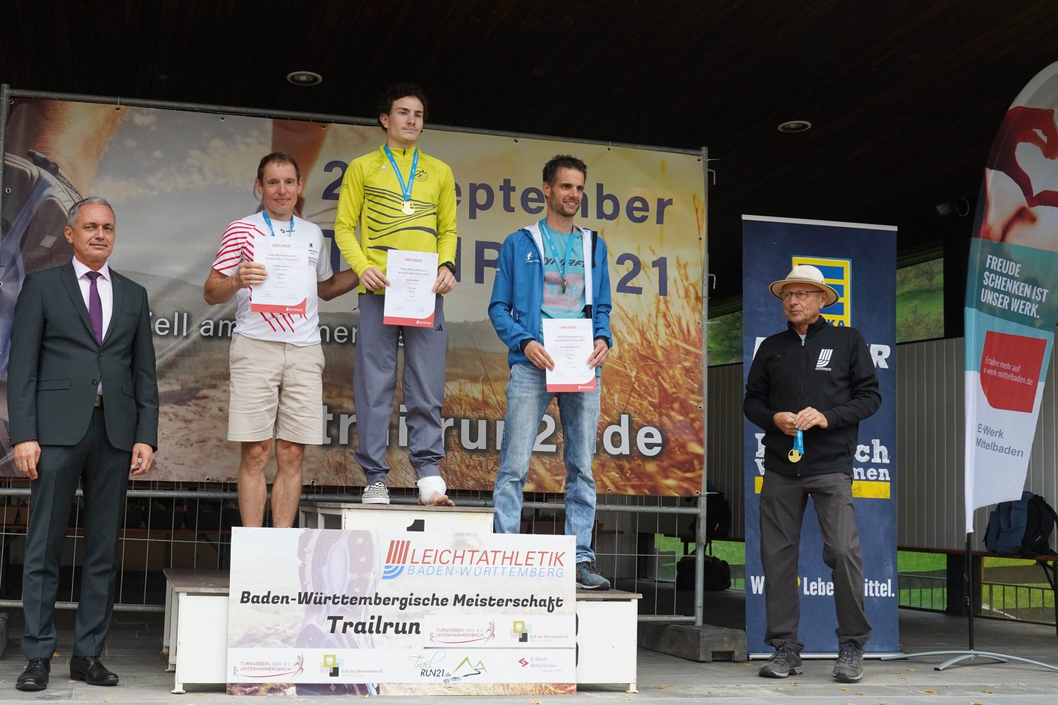 Mit dieser geschlossenen Mannschaftsleistung im vorderen Drittel des Meisterschaftsfeldes konnte der Titel mit der Mannschaft recht deutlich gewonnen werden. Die summierte Endzeit von 4:35:55 h bedeutete über eine viertel Stunde Vorsprung auf Platz zwei. Diesen belegte der SV Oberkollbach in 4:52:22 h vor der LG Brandenkopf in 5:10:20h. Auf Rang vier der Mannschaftswertung folgte dann bereits unser zweites Team mit Sebastian Gauch, Lorenz Görne und Matthias Ludmann. Insgeheim hatte man hier mit einer zweiten Podiumsplatzierung geliebäugelt. Die Zeit von 5:19:45h war dann allerdings recht deutlich vom dritten Platz entfernt. Während Sebastian muskuläre Probleme nach seiner kleineren Verletzungspause etwas ausbremsten, konnte Lorenz sein Trail-Debüt souverän ins Ziel bringen und Matthias rundete die Mannschaftsleistung ab.