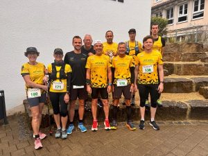 Am Sonntag (14.09.2025) startete eine Gruppe von 15 Schwarz-Gelben über die Distanzen von 6,5 Kilometern, 12,6 Kilometern, 23,5 Kilometern und beim Walking über 12,6 Kilometer. Alle Strecken waren mit ordentlich Höhenmetern versehen – von 170 hm über die kürzeste Distanz über 330 hm bei der mittleren und über 600 hm bei der langen. Der Start für alle Distanzen erfolgte um 9:30 Uhr, fünf Minuten später wurden dann die Walker auf die Strecke geschickt.