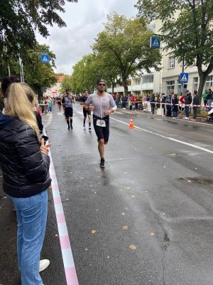 Jonas wusste, dass der Tag länger als sonst werden würde und hielt sich bei seiner Paradedisziplin, dem Schwimmen, daher bewusst etwas zurück, um auf dem Rad dann aufzudrehen. Die ersten 70 Kilometer auf der Radstrecke konnte er sein Potential voll abrufen und musste nur auf dem letzten Drittel etwas Zeit liegen lassen. Das Laufen wurde dann ab Kilometer fünf etwas schwerfällig. Er kämpfte sich dennoch ins Ziel. Seine Splits für die 1,9Km Schwimmen, 90 Kilometer Rad und 21,1 Kilometer Laufen: 26:56min / 2:20:53h/ 1:41:47h für eine Zielzeit von 4:36:47h. Damit Platz 31 in seiner AK und 153 von 1.234 Startern – ein solides Debüt auf dieser Distanz.