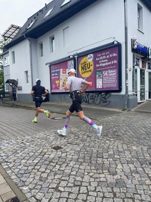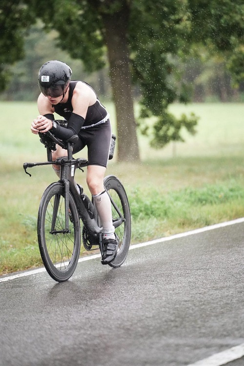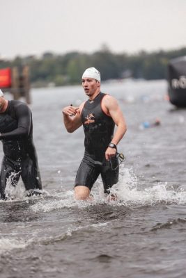 Geschwommen wurde im Dämeritzsee mit Start im Strandbad Erkner. Die Strecke mit einem klassischen out and back recht simpel. Die Räder durften die Athleten im Stadion von Erkner abstellen und nach dem Schwimmen dann auf einer zweimal zu fahrenden Runde der Spree entlang und dem Vorland von Brandenburg auf Touren bringen. Der abschließende Halbmarathon brachte die Athleten in vier Runden durch Erkner, bevor das Ziel im Stadion wartete. Mit kühlen Temperaturen und teilweise starkem Regen waren die Bedingungen für unsere vier Jungs nicht die angenehmsten. Doch lest selbst, wie die vier das Rennen empfunden haben: