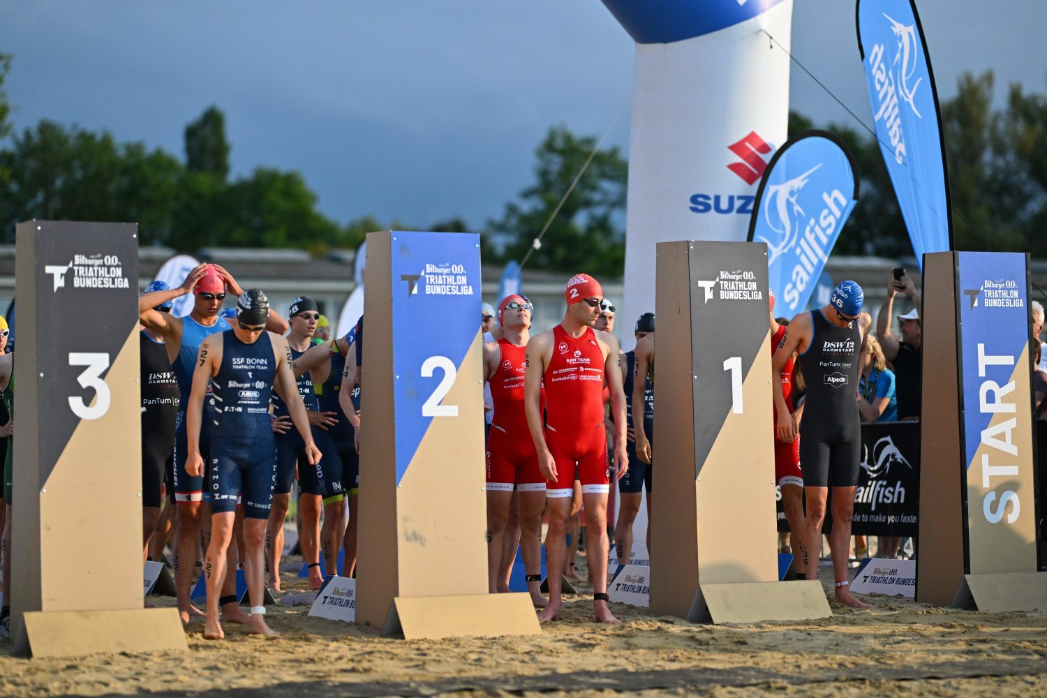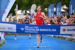 Beim fünften und letzten Rennen der 1. Triathlonbundesliga sichert sich die Männermannschaft vom EJOT Team TV Buschhütten nicht nur den Tagessieg, sondern auch den insgesamt 11. Deutschen Meistertitel. Zudem stellt Buschhütten den besten Athleten des Tages, den Norweger Vetle Bergsvik Thorn, der mit einer Gesamtzeit von 0:41:15 den Maßstab setzte. Die Podiumsplätz 2 und 3 gingen an diesem Tag an die Teams aus Darmstadt und Bonn. In der Tabelle wird das Team Saar Gesamtzweiter, auf Platz 3 das Team aus Berlin. Das PUSCH-DATA-Team AST Süßen musste sich trotz guter Leistung angesichts der starken Konkurrenz mit dem 9. Tagesplatz zufriedengeben. In der Gesamtwertung schließt die Mannschaft die Saison auf einem soliden 7. Tabellenplatz ab. Stärkster Mann des PUSCH-DATA-Teams AST Süßen war Linus Lehnen auf Platz 22, der einmal mehr auf der Laufstrecke überzeugte (insgesamt Schwimmen 44., Rad 26., Lauf 8., Gesamtzeit 0:43:16). Dennoch hatte sich Lehnen mehr erhofft. Nachdem Nicoló Ragazzos Gepäck inklusive Rad nicht von der Fluggesellschaft übermittelt wurde, musste dieser improvisieren. Dank der sehr fairen und nicht selbstverständlichen Geste der Buschhüttener konnte ihm Ersatzausrüstung gestellt werden. Ragazzo bewies sich mit der 3. besten Schwimmzeit, auf dem Rad musste er die Konkurrenz für seine Verhältnisse unerwartet ziehen lassen (Rad 46.). Er konnte auch nicht mehr im Lauf hinreichend aufholen (Lauf 25.) und fiel auf Gesamtplatz 28 zurück (0:43:24). Michael Ziegler zeigte als 29. gute Leistung (Schwimmen 36., Rad 39., Lauf 20., Zeit 0:43:26). Moritz Meier lieferte für seine noch jungen Bundesligajahre ein für sich zufriedenstellendes Rennen und erreichte Platz 38 (Schwimmen 42., Rad 34., Lauf 41., Zeit 0:44:00). Der Wettkampf wurde im Verfolger-Format ausgetragen, bestehend aus Prolog (Supersprint: 250m Schwimmen, 5km Rad unter Windschattenverbot, 1,5km Laufen) und Einzel-Verfolgung (Distanzen zwischen Supersprint und Sprint: 500m, 15km, 3,5km). Nach dem Prolog, bei welchen die Männer ab 16:05 Uhr einzeln alle 20 Sekunden mit Landstart im Maschsee ins Rennen gingen, lag das PUSCH-DATA-Team AST Süßen noch auf Platz 4. Die Zeitabstände aus dem Prolog bestimmten direkt die Startränge und Zeitabstände der Einzel-Verfolgung ab 18:15 Uhr. Leider war im zweiten Lauf schon nach dem Schwimmen abzusehen, dass die gute Ausgangslage vom Prolog nicht gehalten werden konnte. Insgesamt hatten sich die Athleten und Verantwortlichen um das PUSCH-DATA-Team AST Süßen mehr für die Saison 2023 erhofft. Das gesamte Team blickt nun positiv ins kommende Jahr. Dann wird wieder tatkräftig und mit viel Unterstützung die Top 5 angepeilt. Text: Teresa Moll Fotos: AST Süßen und DTU/Petko Baier Galerie: https://triathlondeutschland.smugmug.com/1-Bitburger-00-Triathlon-Bundesliga/2023/Hannover/i-tPMJdKx